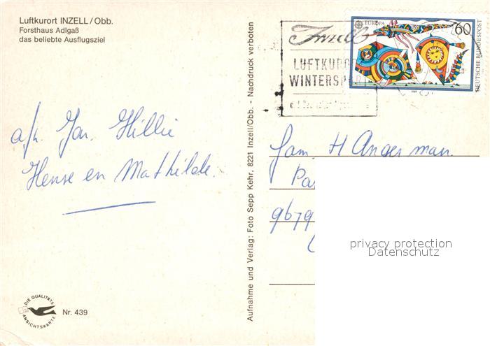 72974169 alte Postkarte Inzell Forsthaus Adlgass Frillensee postalisch gelaufen Erhaltung siehe scans [PaolaD17] KatCode: 11110009189124