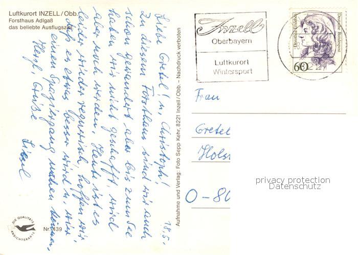 73119736 alte Postkarte Inzell Forsthaus Adlgass mit Frillensee postalisch gelaufen Erhaltung siehe scans [LiesaD40] KatCode: 11110009189124