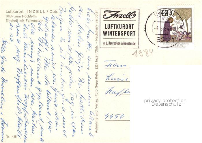 72925606 alte Postkarte Inzell Hochfelln Einsiedl Falkenstein postalisch gelaufen Erhaltung siehe scans [NatalD47] KatCode: 11110009189124