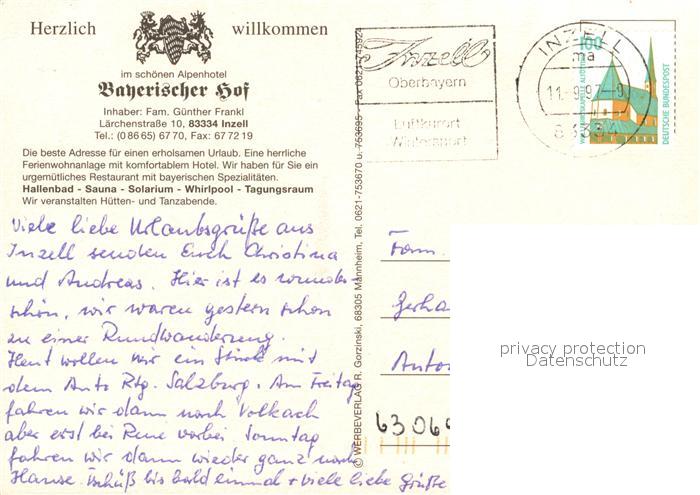 73244082 alte Postkarte Inzell Hotel Bayerischer-Hof Schwimmbad postalisch gelaufen Erhaltung siehe scans [LiesaD40] KatCode: 11110009189124