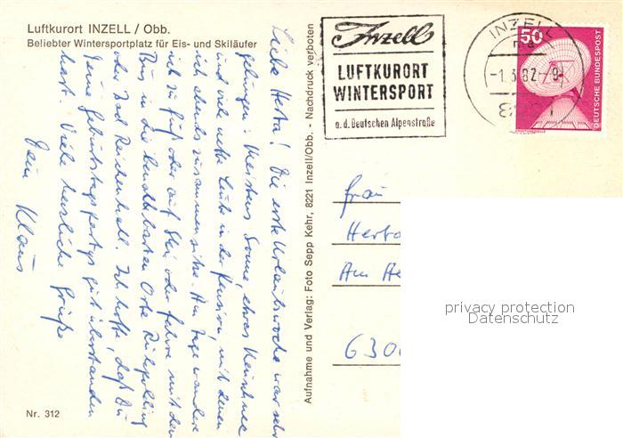 73295195 alte Postkarte Inzell Kirche Eisbahn Ortspartie Schlepplift postalisch gelaufen Erhaltung siehe scans [WerneD78] KatCode: 11110009189124
