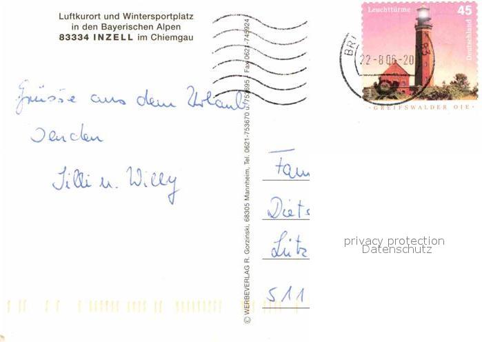 72865480 alte Postkarte Inzell Ortsansicht mit Kirche Platz Luftkurort Wintersportplatz Bayerische Alpen postalisch gelaufen Erhaltung siehe scans [FriedD77] KatCode: 11110009189124