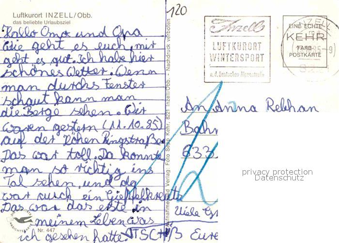 72902721 alte Postkarte Inzell Panorama Kirche postalisch gelaufen Erhaltung siehe scans [AndreD76] KatCode: 11110009189124