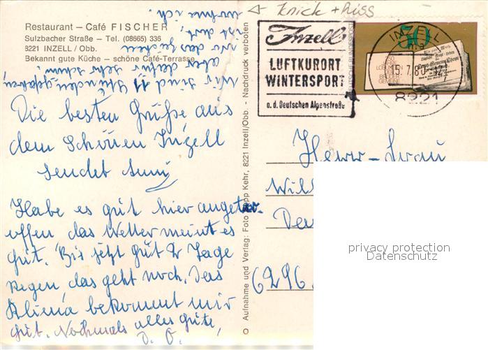 73197796 alte Postkarte Inzell Restaurant Fischer postalisch gelaufen Erhaltung siehe scans [NatalD47] KatCode: 11110009189124