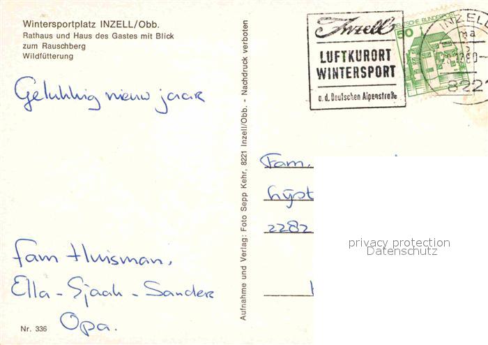 72887238 alte Postkarte Inzell Skigebiet Haus des Gasten Rauschberg Wildfuetterung postalisch gelaufen Erhaltung siehe scans [LiesaD40] KatCode: 11110009189124