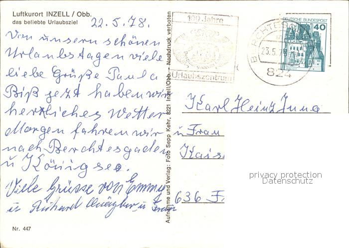 72506194 alte Postkarte Inzell Traunstein Bayern postalisch gelaufen Erhaltung siehe scans KatCode: 11110009189124