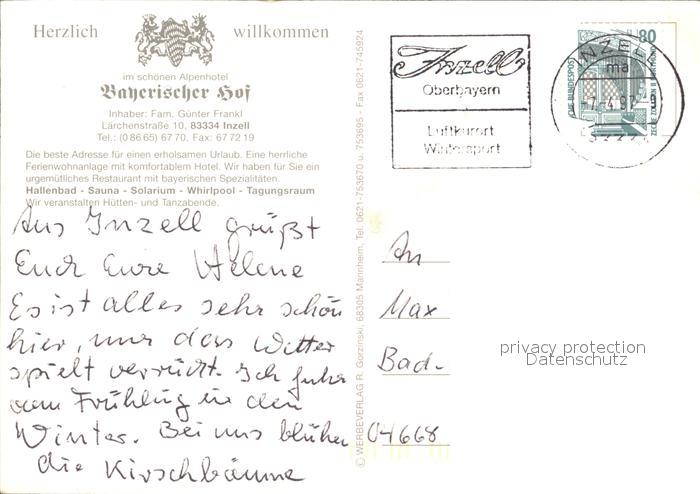 72321424 alte Postkarte Inzell Traunstein Bayern Alpenhotel Bayerischer Hof postalisch gelaufen Erhaltung siehe scans KatCode: 11110009189124
