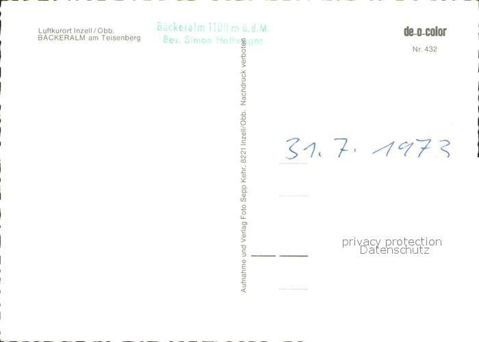 72266235 Inzell Traunstein Bayern Baeckeralm postalisch nicht gelaufen Erhaltung siehe scans KatCode: 11110009189124