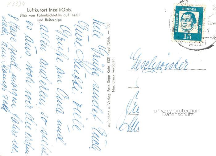 73668604 Inzell Traunstein Bayern Blick von Fahrnbichl Alm und Reiteralpe postalisch gelaufen Erhaltung siehe scans [WerneD78] alte Postkarte Wern Katcode 11110009189124
