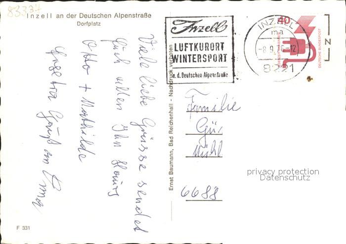 72146233 alte Postkarte Inzell Traunstein Bayern Dorfplatz postalisch gelaufen Erhaltung siehe scans KatCode: 11110009189124