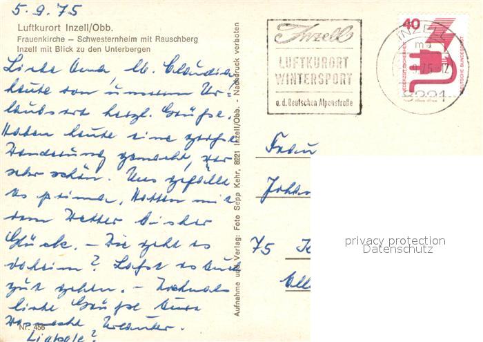73717673 Inzell Traunstein Bayern Frauenkirche Schwesternheim St Vincenz mit Rauschberg Ortsansicht mit Unterbergen postalisch gelaufen Erhaltung siehe scans [WerneD78] alte Postkarte Wern Katcode 11110009189124