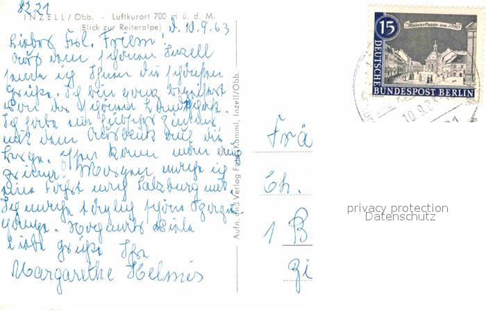 72616236 alte Postkarte Inzell Traunstein Bayern Gesamtansicht Luftkurort Blick zur Reiteralpe Berchtesgadener Alpen postalisch gelaufen Erhaltung siehe scans [FriedD77] KatCode: 11110009189124
