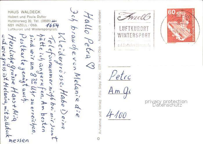 71927322 alte Postkarte Inzell Traunstein Bayern Haus Waldeck postalisch gelaufen Erhaltung siehe scans KatCode: 11110009189124
