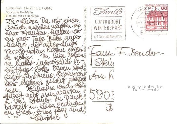 72505911 alte Postkarte Inzell Traunstein Bayern Hochfelln Einsiedl Falkenstein postalisch gelaufen Erhaltung siehe scans KatCode: 11110009189124