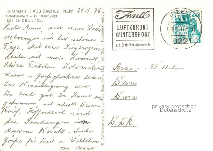 73708480 Inzell Traunstein Bayern Kuranstalt Haus Bachleitner Restaurant Terrasse postalisch gelaufen Erhaltung siehe scans [FriedD77] alte Postkarte Frie Katcode 11110009189124