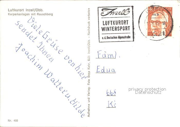 72146228 alte Postkarte Inzell Traunstein Bayern Kurpark mit Rauschberg postalisch gelaufen Erhaltung siehe scans KatCode: 11110009189124