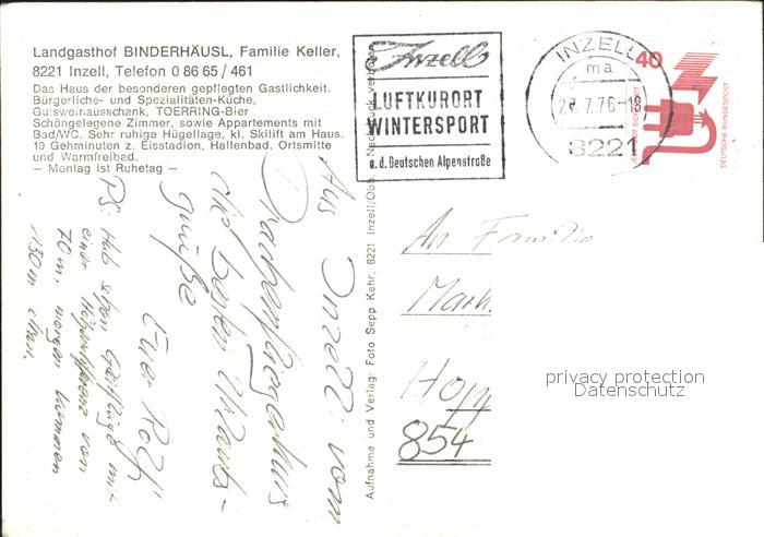 72105315 alte Postkarte Inzell Traunstein Bayern Landgasthof Binderhaeusel postalisch gelaufen Erhaltung siehe scans KatCode: 11110009189124