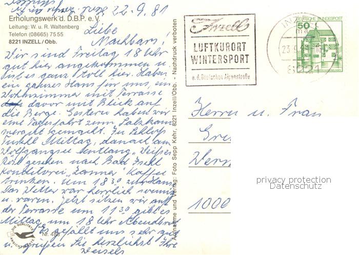 73766750 Inzell Traunstein Bayern Postferiendorf Erholungswerk des D.B.P. e.V. postalisch gelaufen Erhaltung siehe scans [FriedD77] alte Postkarte Frie Katcode 11110009189124