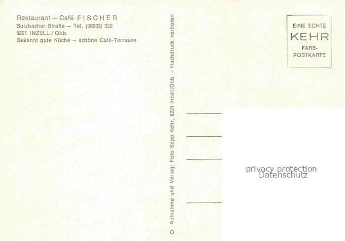 74099674 Inzell Traunstein Bayern Restaurant Cafe Fischer postalisch nicht gelaufen Erhaltung siehe scans [WerneD78] KatCode: 11110009189124
