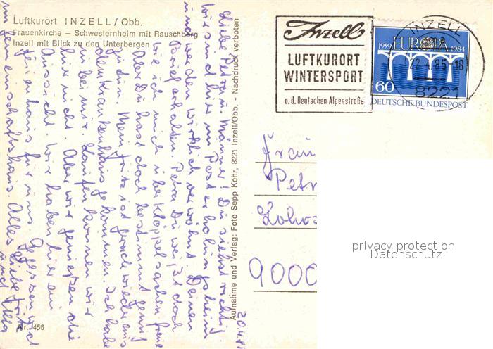 72650968 alte Postkarte Inzell Traunstein Bayern Schwesternheim St Vincenz Frauenkirche Innenansicht Blick zu Unterbergen postalisch gelaufen Erhaltung siehe scans [FriedD77] KatCode: 11110009189124