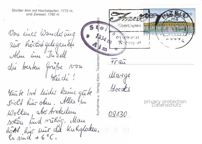 72616673 alte Postkarte Inzell Traunstein Bayern Stoisser Alm mit Hochstaufen und Zwiesel postalisch gelaufen Erhaltung siehe scans [WerneD78] KatCode: 11110009189124