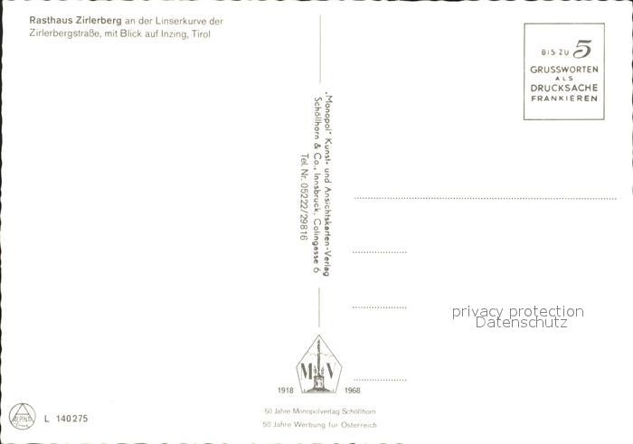 72246867 Inzing Tirol Rasthaus Zirlerberg Zirlerbergstrasse Alpenpanorama postalisch nicht gelaufen Erhaltung siehe scans KatCode: 11390332070319