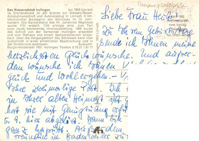 73948421 Inzlingen Wasserschloss postalisch nicht gelaufen Erhaltung siehe scans [WerneD78] KatCode: 11110008336043