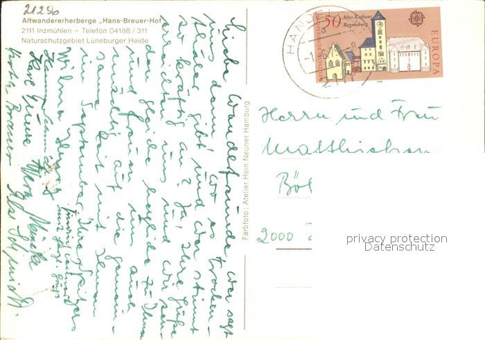 72112936 alte Postkarte Inzmuehlen Altwandererherberge Hans Breuer HOf postalisch gelaufen Erhaltung siehe scans KatCode: 11110003353015