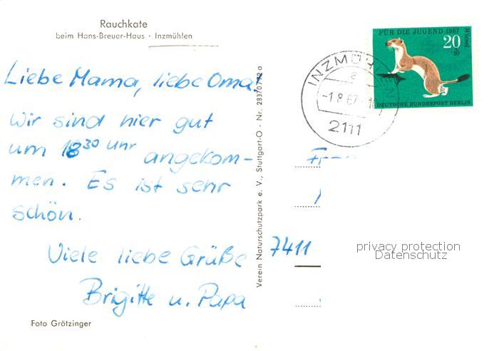 73835920 alte Postkarte Inzmuehlen Handeloh Rauchkate beim Hans Breuer Haus postalisch gelaufen Erhaltung siehe scans [WerneD78] KatCode: 11110003353015
