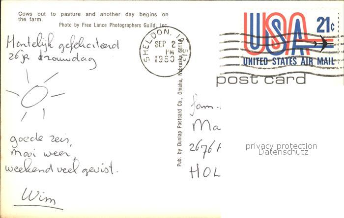 72578560 old postcard Iowa Cows Farm postalisch gelaufen Erhaltung siehe scans [LiesaD40] KatCode: 14140200000000