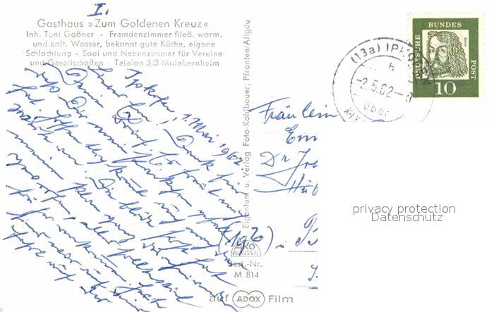 72630471 alte Postkarte Iphofen Gasthaus Zum Goldenen Kreuz Fachwerk postalisch gelaufen Erhaltung siehe scans [LiesaD40] KatCode: 11110009675139