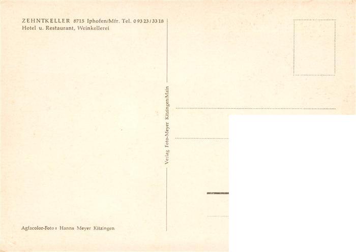 73887149 Iphofen Hotel Restaurant Weinkellerei Zehntkeller postalisch nicht gelaufen Erhaltung siehe scans [WerneD78] KatCode: 11110009675139