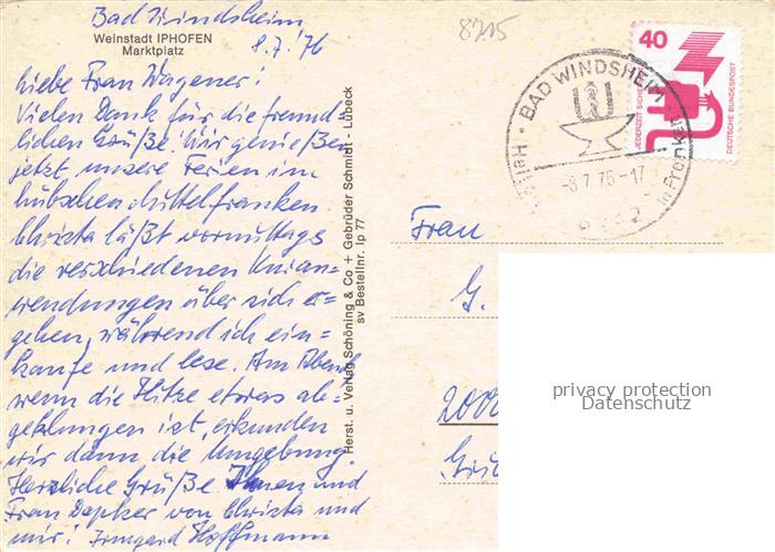 74054464 alte Postkarte Iphofen Marktplatz Rathaus Kirche postalisch gelaufen Erhaltung siehe scans [WerneD78] KatCode: 11110009675139