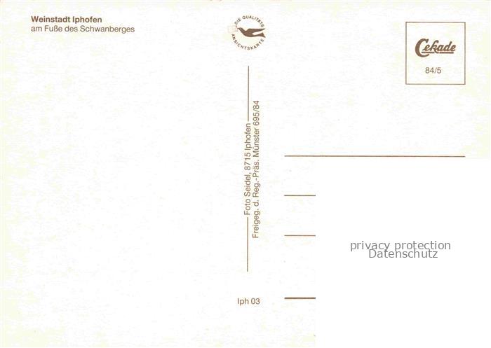 74026809 Iphofen Panorama Weinstadt am Fusse des Schwanberges postalisch nicht gelaufen Fliegeraufnahme Erhaltung siehe scans [FriedD77] KatCode: 11110009675139