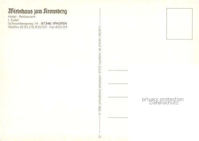 73652777 Iphofen Wirtshaus zum Kronsberg Gaststube Terrasse Zimmer postalisch nicht gelaufen Erhaltung siehe scans [WerneD78] KatCode: 11110009675139