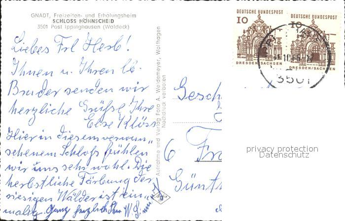 72445782 alte Postkarte Ippinghausen Schloss Hoehnscheid Erholungsheim Gnadt postalisch gelaufen Erhaltung siehe scans KatCode: 11110006633028