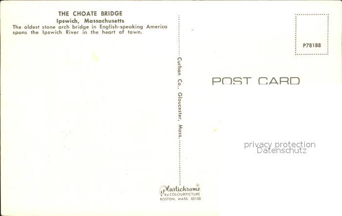 72315570 Ipswich Massachusetts Choate Bridge postalisch nicht gelaufen Erhaltung siehe scans KatCode: 14140230000000