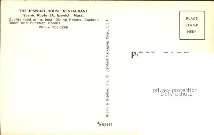 72315569 Ipswich Massachusetts Ipswicch House Restaurant postalisch nicht gelaufen Erhaltung siehe scans KatCode: 14140230000000