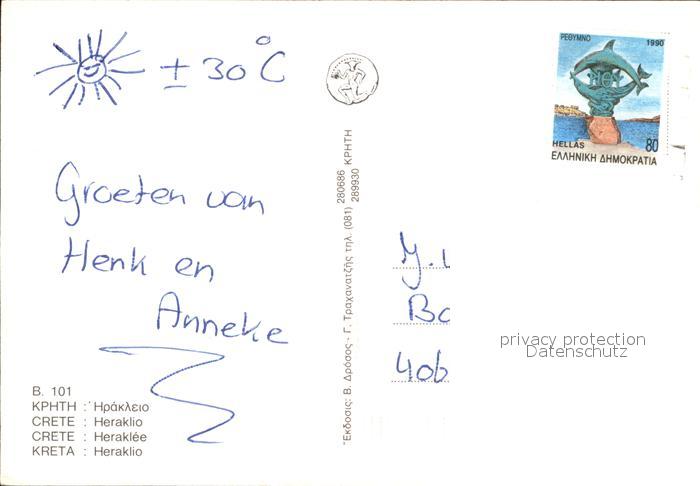 old postcard Iraklio Heraklion Hafen postalisch gelaufen Erhaltung siehe scans