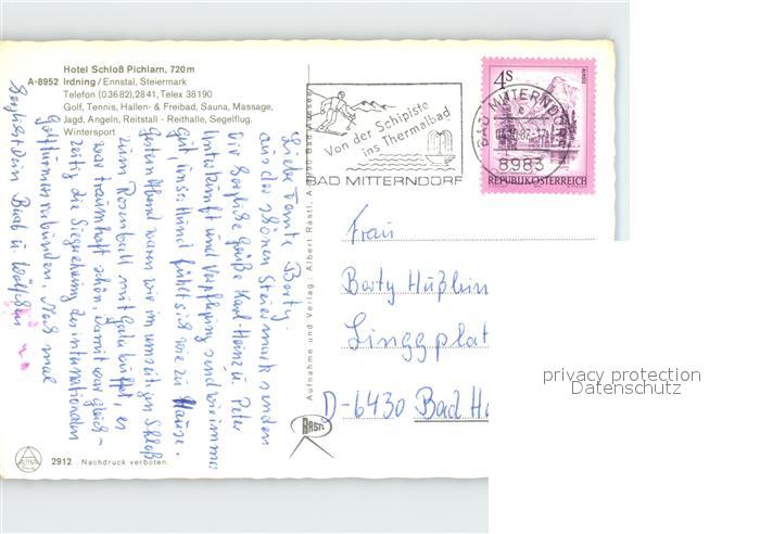72256708 alte Postkarte Irdning Hotel Schloss Pichlam postalisch gelaufen Erhaltung siehe scans KatCode: 11390222061218