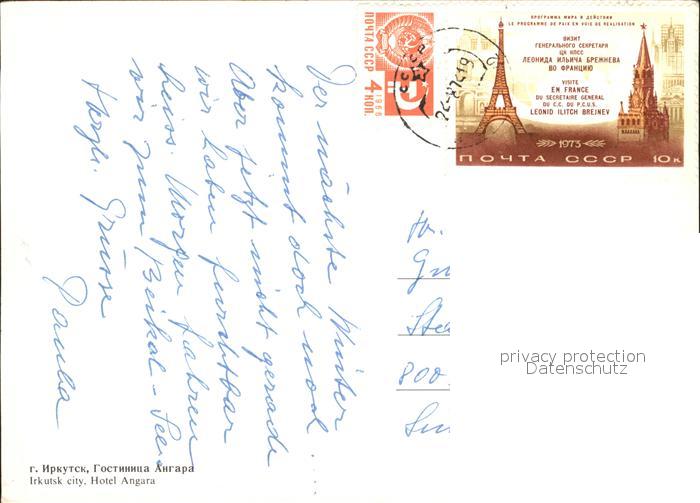 old postcard Irkutsk Hotel Angara postalisch gelaufen Erhaltung siehe scans
