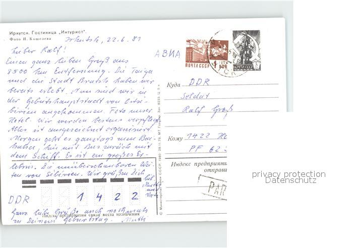old postcard Irkutsk Hotel Intourist postalisch gelaufen Erhaltung siehe scans