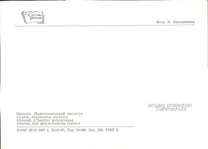 Irkutsk Institut postalisch nicht gelaufen Erhaltung siehe scans