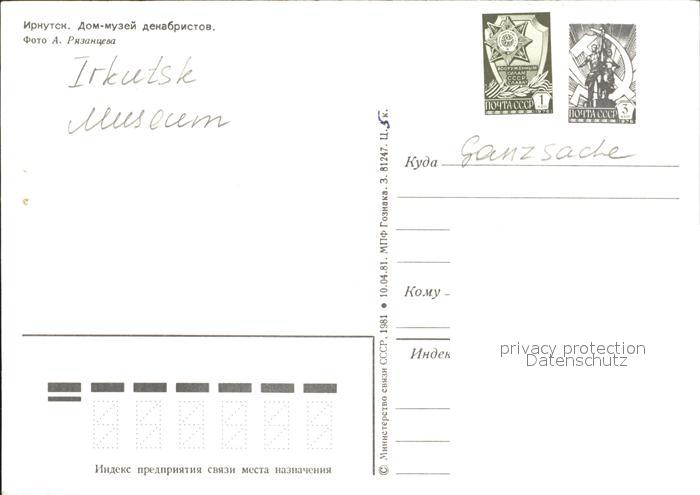 Irkutsk Museum postalisch nicht gelaufen Ganzsache (eingedruckte Briefmarke) Erhaltung siehe scans