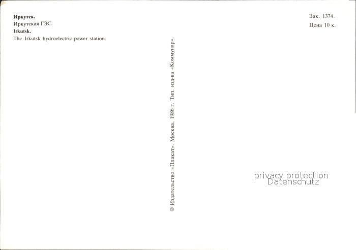 Irkutsk The Irkutsk hydroelectric power station postalisch nicht gelaufen Erhaltung siehe scans
