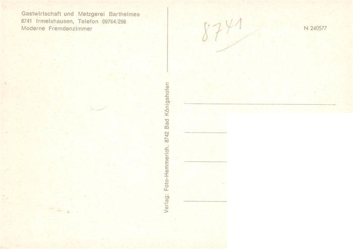 73893502 Irmelshausen Gastwirtschaft Metzgerei Barthelmes Gaststube Zimmer Panorama postalisch nicht gelaufen Erhaltung siehe scans [WerneD78] KatCode: 11110009673134