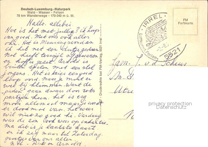 72494748 alte Postkarte Irrel Deutsch Luxemburg Naturpark postalisch gelaufen Erhaltung siehe scans KatCode: 11110007232063