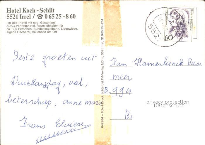 72377612 alte Postkarte Irrel Hotel Koch Schilt postalisch gelaufen Erhaltung siehe scans KatCode: 11110007232063