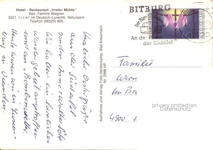 72540303 alte Postkarte Irrel Hotel Restaurant Irreler Muehle postalisch gelaufen Erhaltung siehe scans [AndreD76 kt119box] KatCode: 11110007232063