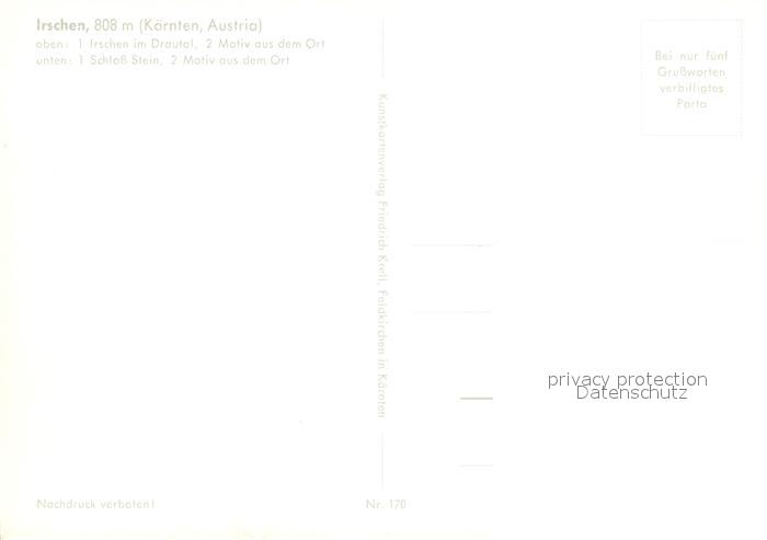 72941550 Irschen Kaernten Drautal Schloss Stein postalisch nicht gelaufen Erhaltung siehe scans [PaolaD17] KatCode: 11390212020611